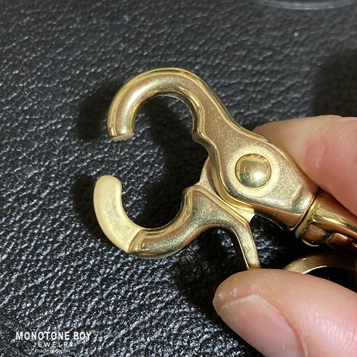 ブラス レバー式フックLフラットリング付き